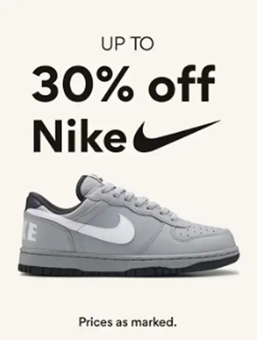 Stop by and take up to 30% off on Nike shoes in store for a limited time.