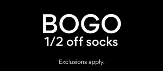 Hurry in and save! Shop in store and enjoy our BOGO 1/2 off on socks.