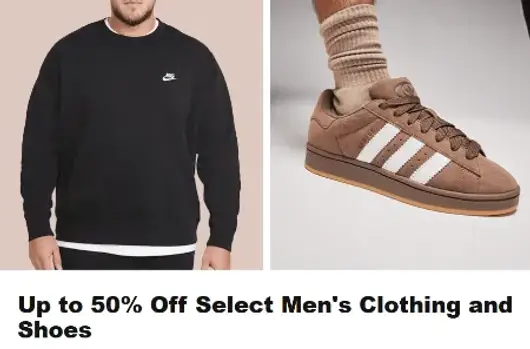 Don't miss out! Shop in store and get up to 50% off select men's clothing and shoes.