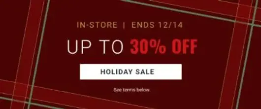 Save now! Shop in store and get up to 30% off on holiday sale.