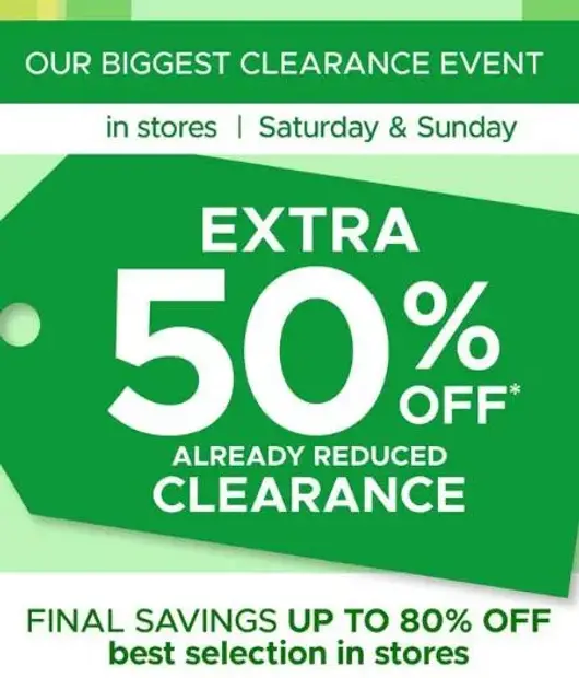 Hurry in and get an extra 50% off already reduced clearance in store for a limited time.